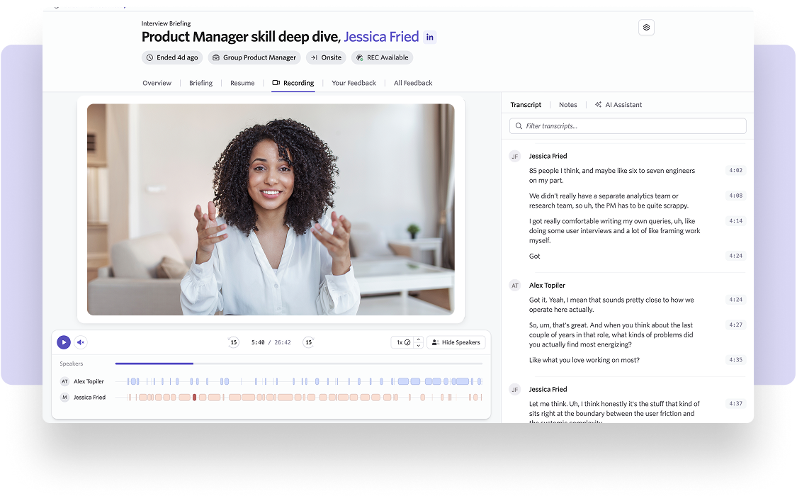 Consistent transcripts and summaries create a fairer process and a shared foundation for evaluation across the team.