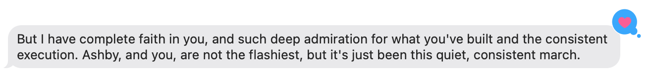 While we’re excited about our progress to date, this “north star” keeps us focused on all the ways in which we want to improve Ashby in the coming months and years.