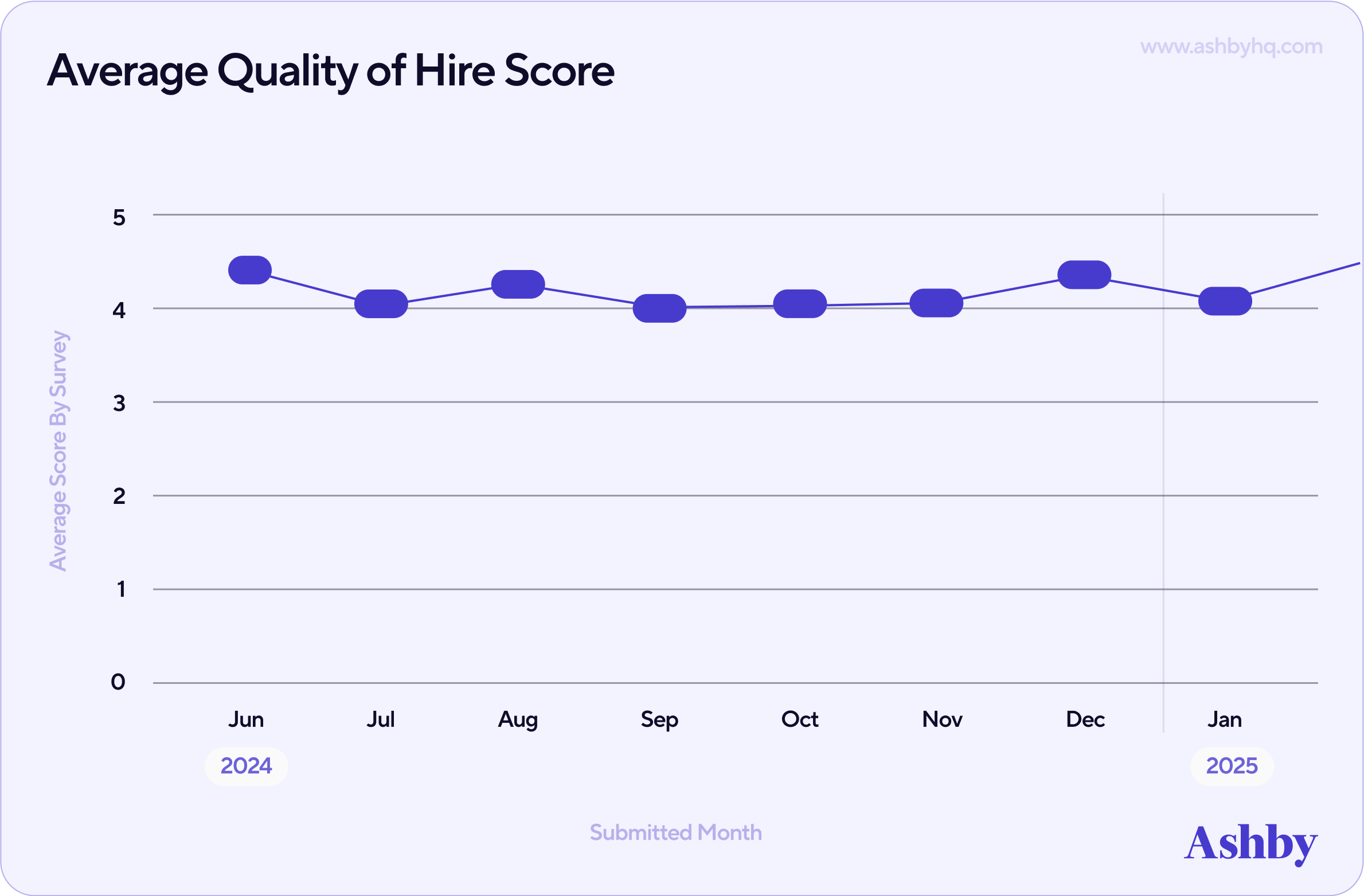 “What's nice about Ashby is how low the lift can be for employees to use some of the features. Getting buy-in [for Quality of Hire] is the toughest part, but when it comes to the actual workflow, it feels simple. Ashby automates the service and the persistent notifications don't stop until the employee fills it out.”