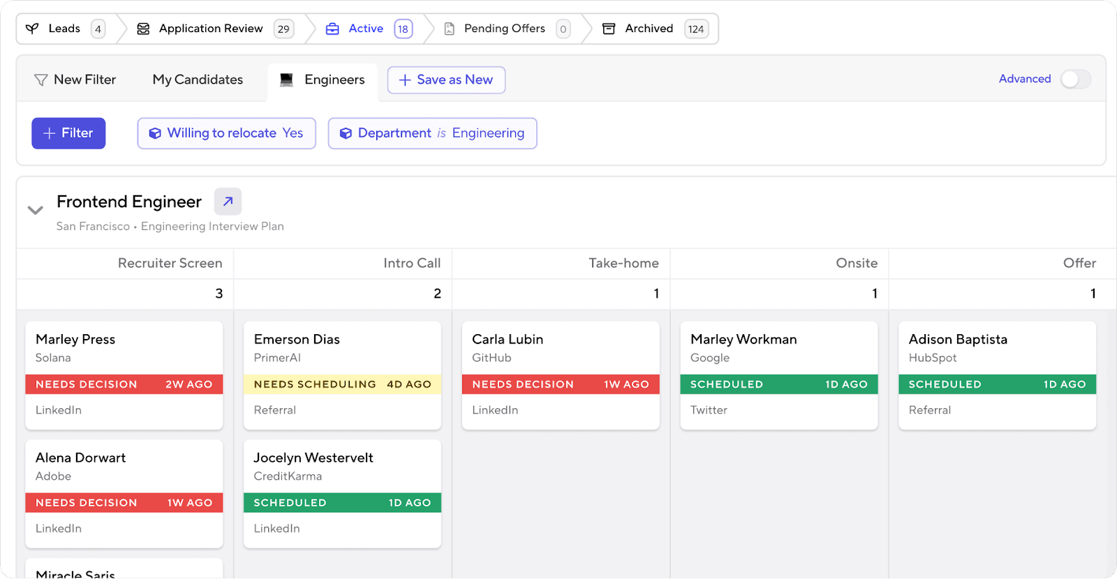 “Our engineering recruiting team is really focused on hiring the best engineering talent. That means a lot of patience and adjusting our processes when needed. Our engineering hiring managers are super involved in making sure we’re hiring the right people, and that’s where we need an ATS that supports a difference in process.”