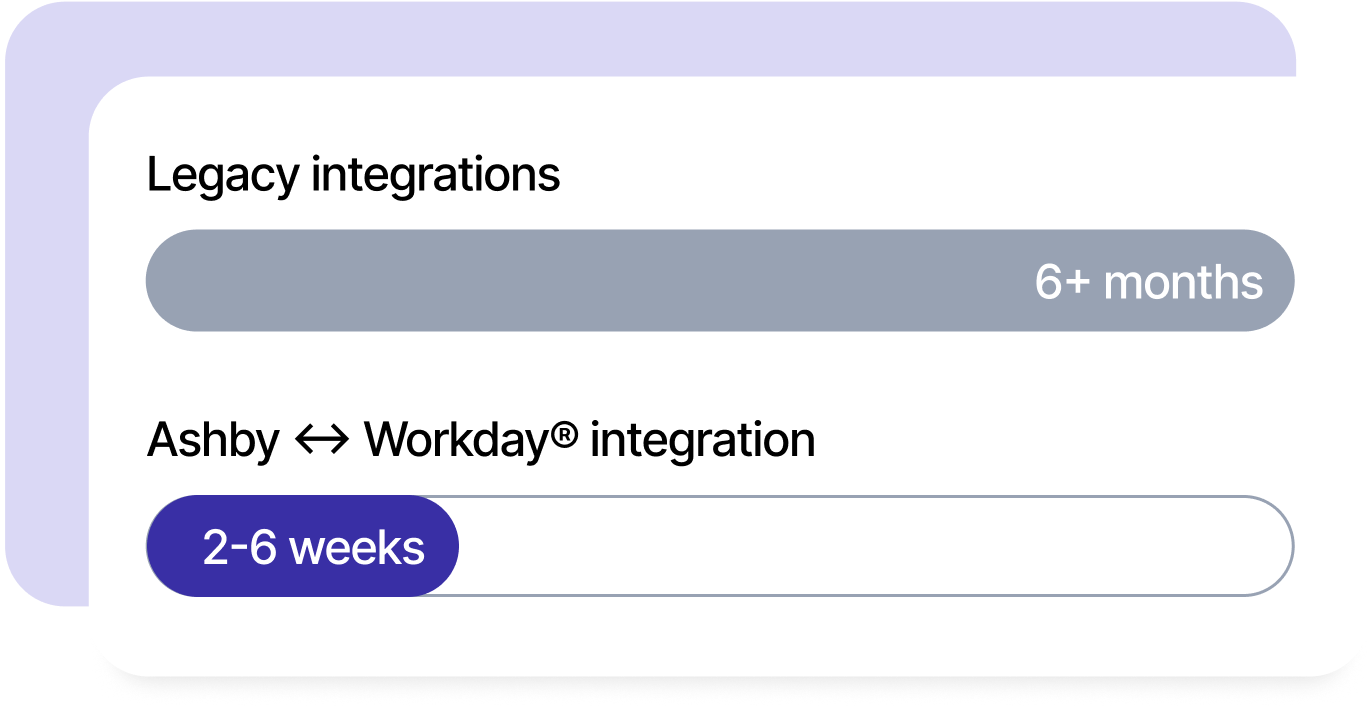 On average, teams are able to integrate Ashby and Workday® in 2-6 weeks.