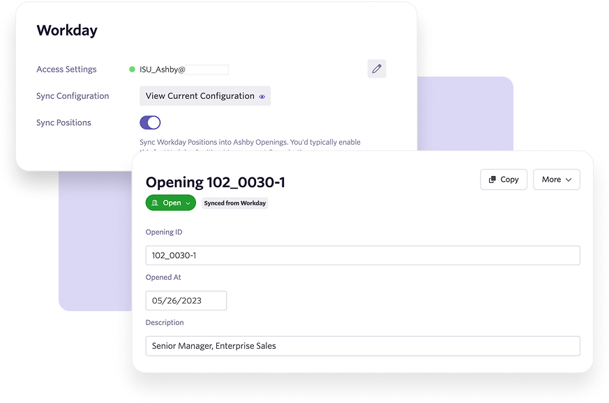 Ashby's Workday® integration is painless to set up, syncs reliably, and aligns stakeholders