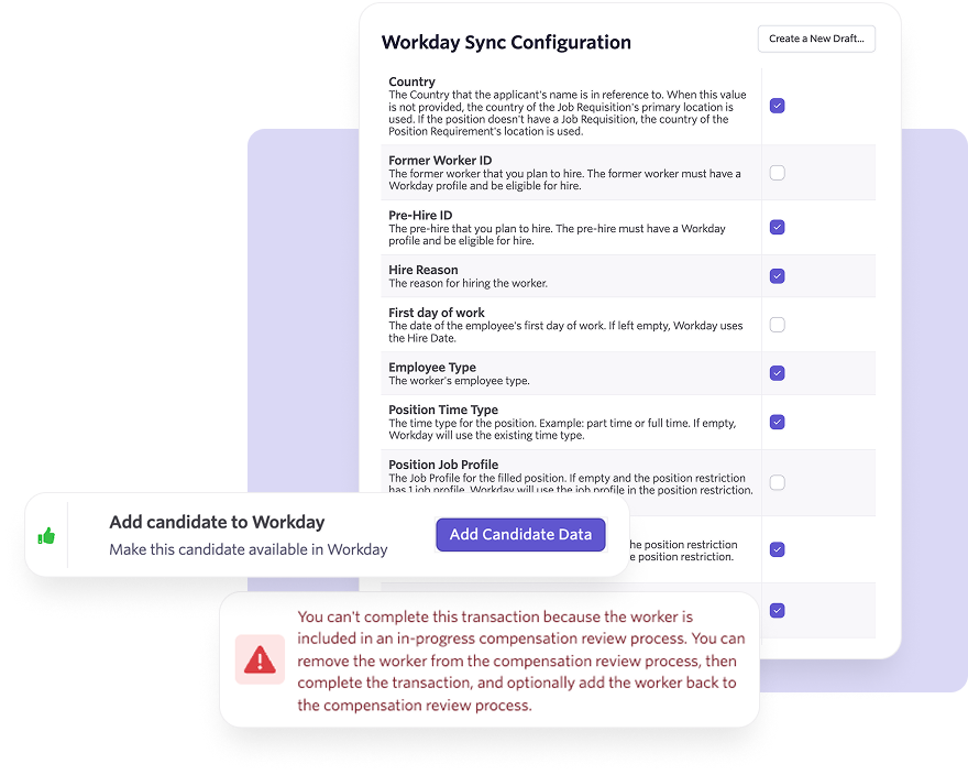 Keep Workday® clean and authoritative while equipping your talent team with modern tools that elevate your hiring process.